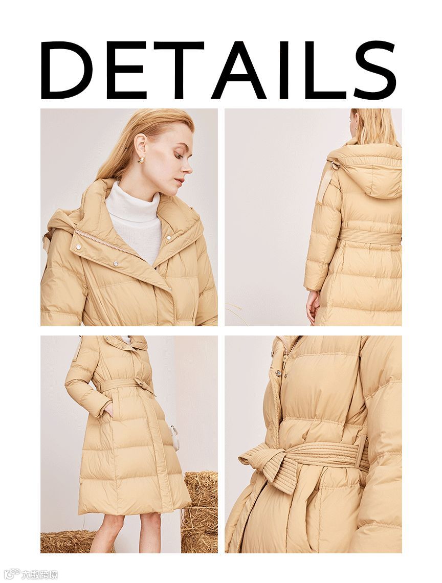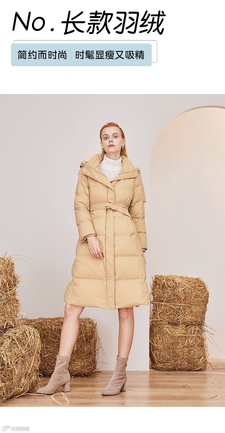 款式简洁大方,寒冷的冬天怎么能没有一件长款羽绒服呢,瞬间温暖,腰带加身,系出好腰身,拉高腰线,修饰完美比例,简约大方的气质。