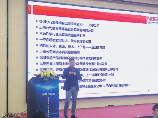 “面对风险和不确定性,快速调整‘资本认知’是当下民营中小企业家需要做出的第一选择。”宋卫华表示,如何使企业从“挣钱”蜕变到“值钱”是注册制下制造业企业发展的核心。他将中小企业上市的核心逻辑归纳为“3个1”:1个合法合规的载体,1个大家认可的大利益,1套链接共赢方的好机制。引导企业与新经济、新技术、新产业、新业态融通发展,加快实现产业运营+资本运营双轮驱动,并通过经典案例的深刻剖析,揪出“资本运作”这一核心差别,为中小企业突围发展指引了方向。