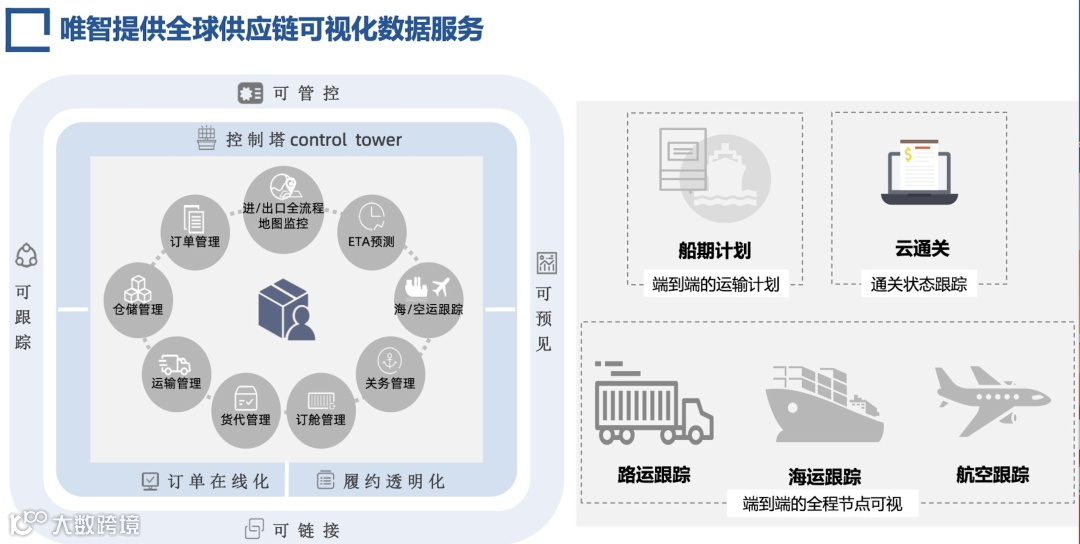 2021年的“苏伊士运河”事件给全球供应链敲响了进一步的警钟,节节攀升的运价,一箱难求的现状,更是凸显了疫情时代的全球供应链的无奈。无疑,全球贸易和世界经济一体化的车轮依旧会滚滚向前,但是如何通过数字物流、数字关务、供应链可视化化解当下的痛点,提升全球供应链的效率和效果,是所有跨境贸易与供应链从业者的迫切课题。唯智信息协同行业生态伙伴,多年深耕于全球供应链领域、国际供应链发展的趋势及经验,率先提出了创新性全球端到端的物流可视化方案。 |
