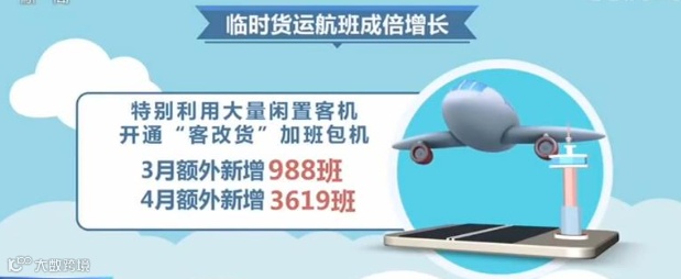 据5月13日召开的中国民用航空局新闻发布会消息,4月份中外航空公司平均每周执行货运定期航班1574班,比疫情前增加55.2%,临时货运航班也实现爆发式增长,3月、4月分别批复全货机加班包机1794班、2225班,同比分别增加401.1%、476.4%。