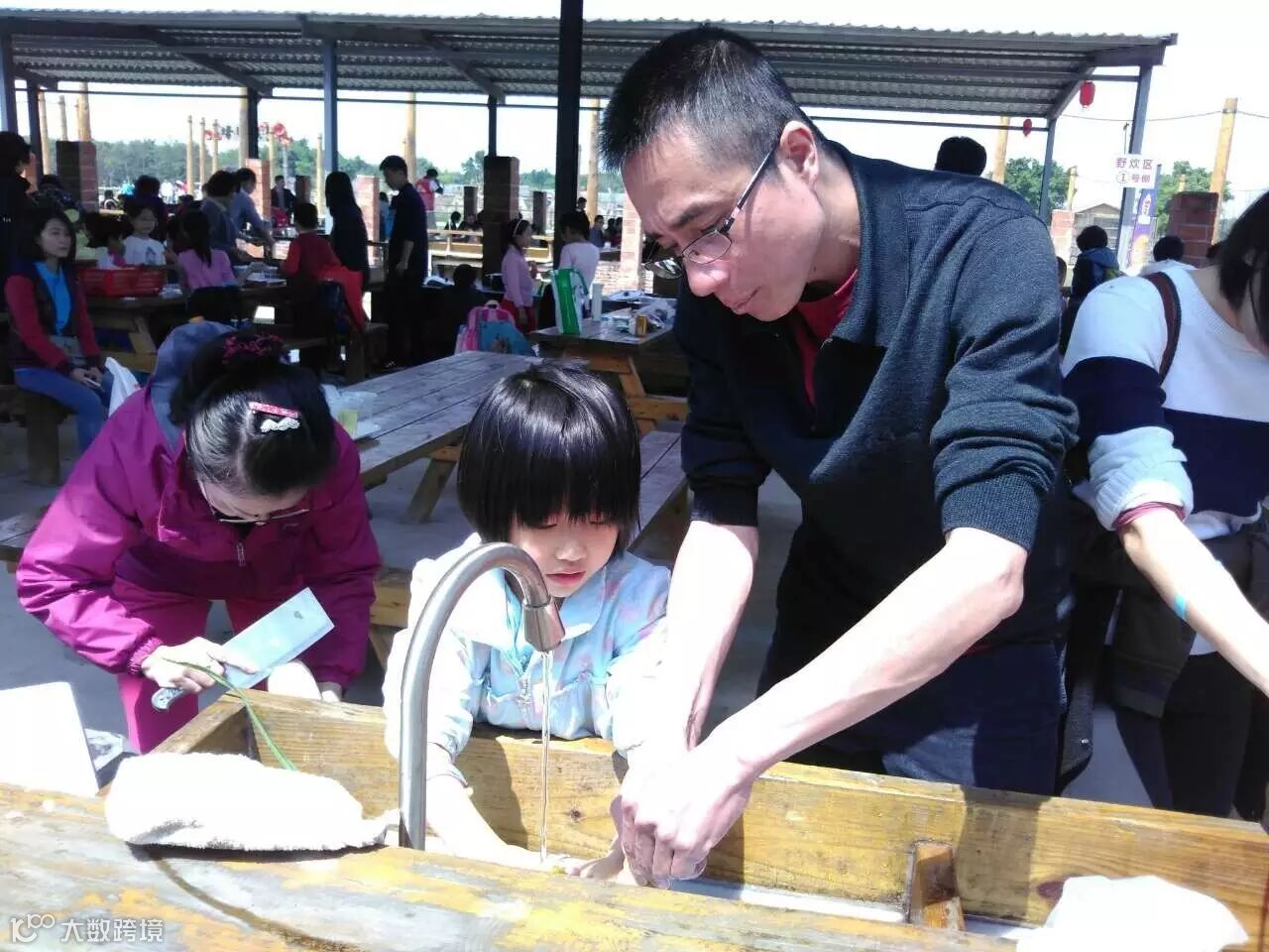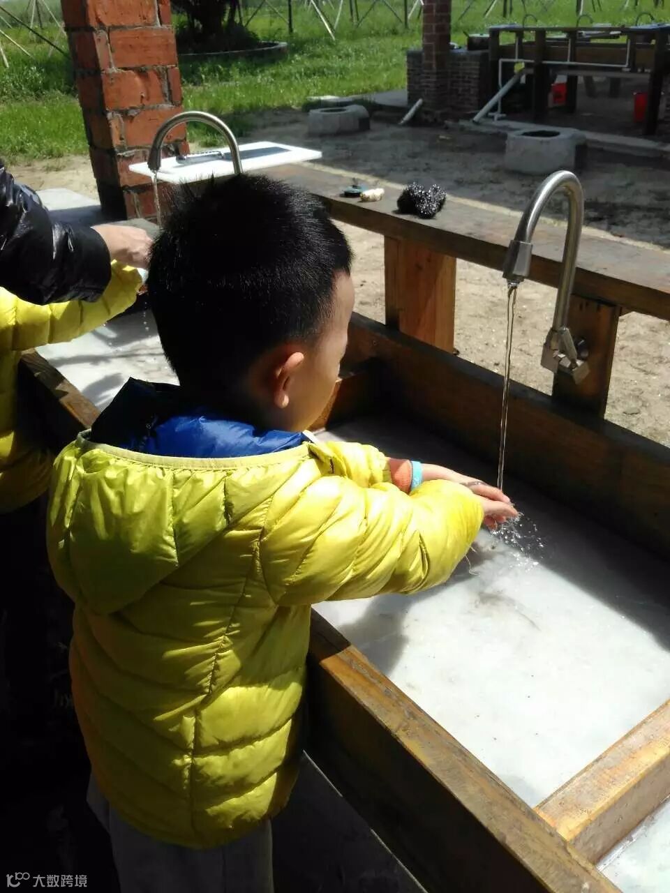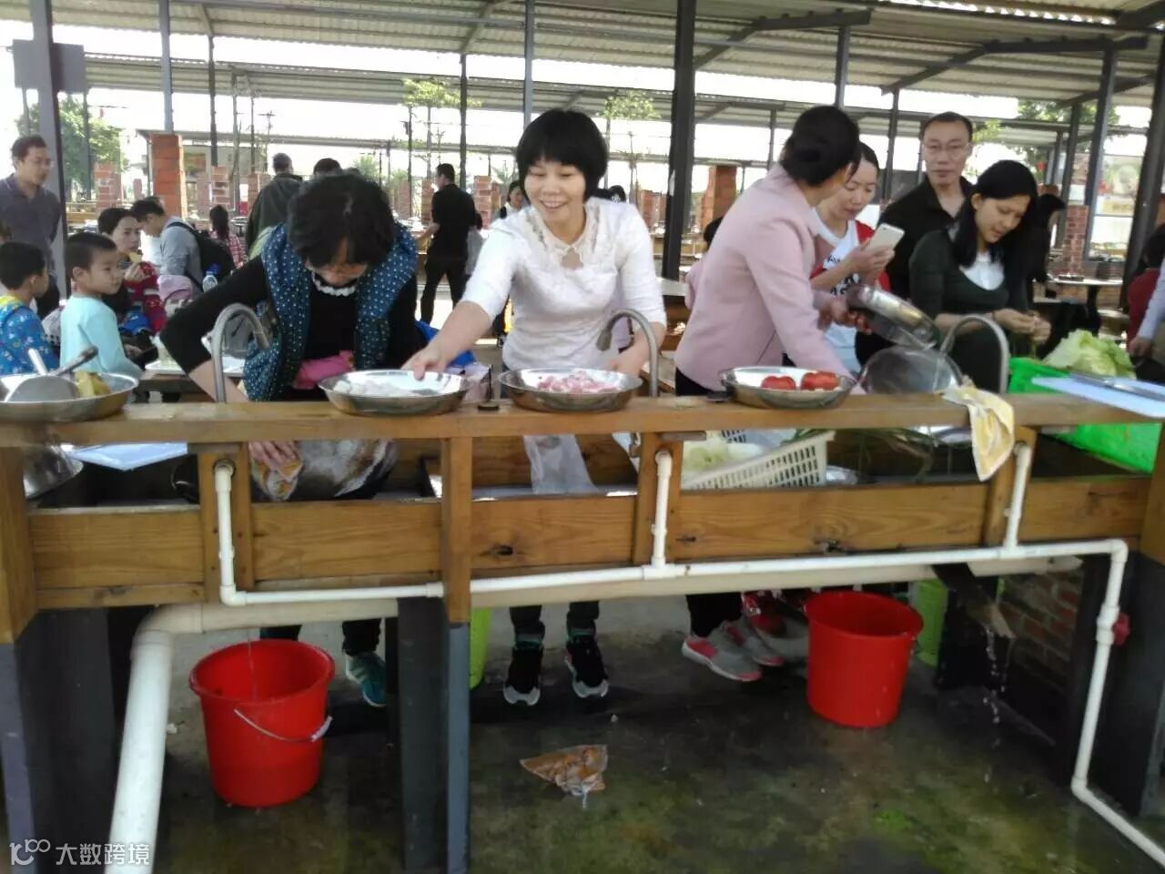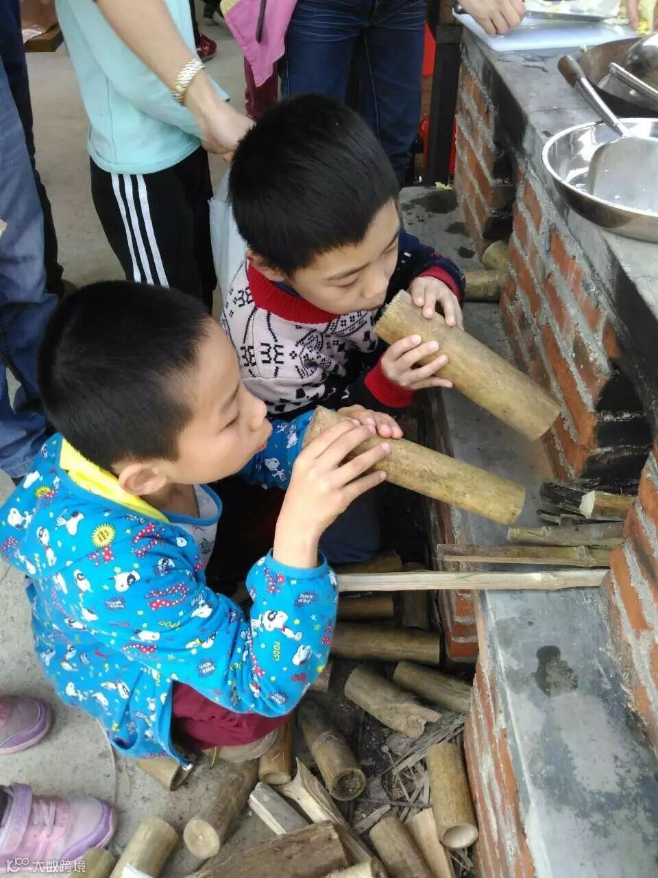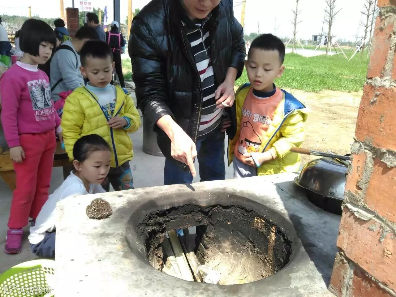 洗菜,切菜,生火,开始久违的农家乐!家长们分工合作,合作无间。