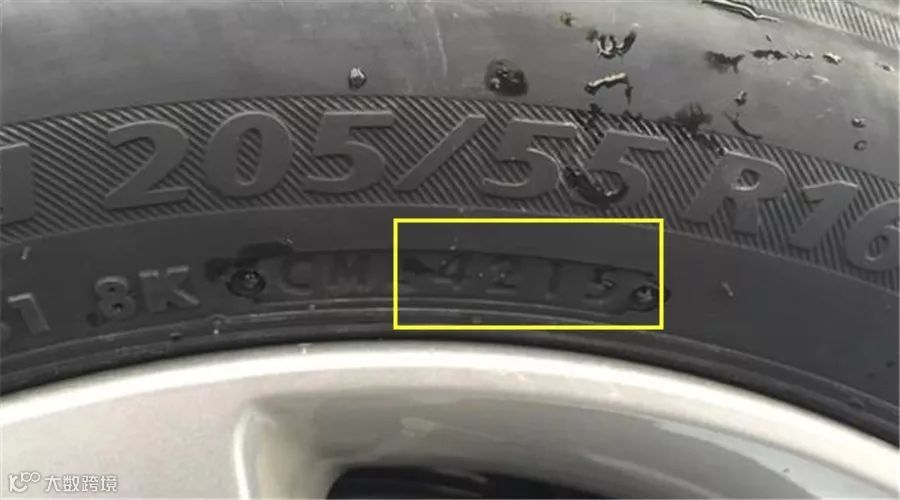 轮胎的外侧胎壁处一般都有一组字母和数字,最后的四位数字代表了轮胎的生产日期,前两位为周数,后两位为年份,如4215,表示15年第42周生产的。建议各位车主自查,如果超过5年应及早更换。