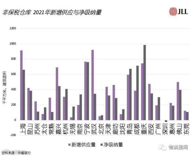 华西2021年净吸纳量达历史峰值;华东除了个别二线城市由于新供应有限,大部分城市年净吸纳量达30-75万平方米;华南由于供不应求,新增供应被快速去化;在华北区,北京的净吸纳量受到供应限制保持低位,其他城市均为正常水平。
