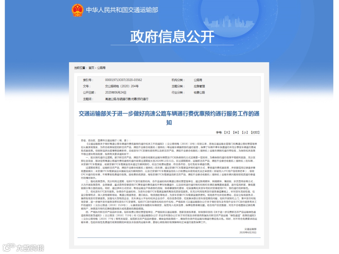 近日,交通运输部印发《关于进一步做好高速公路车辆通行费优惠预约通行服务工作的通知》(简称《通知》),受新冠肺炎疫情等因素影响,目前货车ETC安装和使用率以及鲜活农产品、跨区作业联合收割机 (插秧机) 运输车辆预约通行率较低,为保持相关政策平稳过渡和有效衔接,决定将高速公路通行费优惠预约通行政策过渡期延长至2020年12月31日。