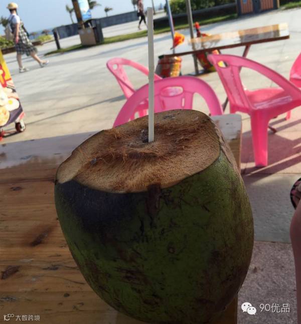 呼~玩累了,来个冰镇椰青吧