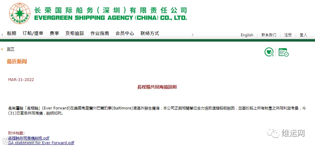 最新消息,3月31日,长荣海运发布公告:长荣属轮“长程轮”(Ever Forward)在美国马里兰州巴尔的摩(Baltimore)港区外发生搁浅,本公司正与相关单位全力协助这艘船舶脱困,并基于船上所有财产之共同利益考量,今(31)日宣告共同海损。