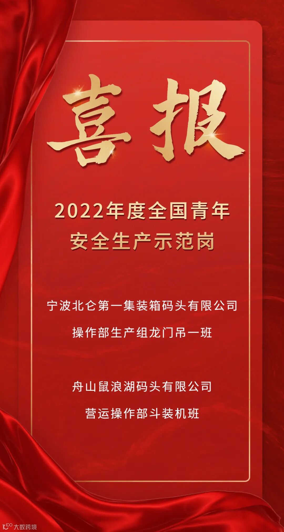 近日,共青团中央、应急管理部下发通知,认定500个集体为2022年度全国青年安全生产示范岗,浙江省海港集团、宁波舟山港集团所属北一集司操作部生产组龙门吊一班、鼠浪湖公司营运操作部斗装机班两个集体成功获评。