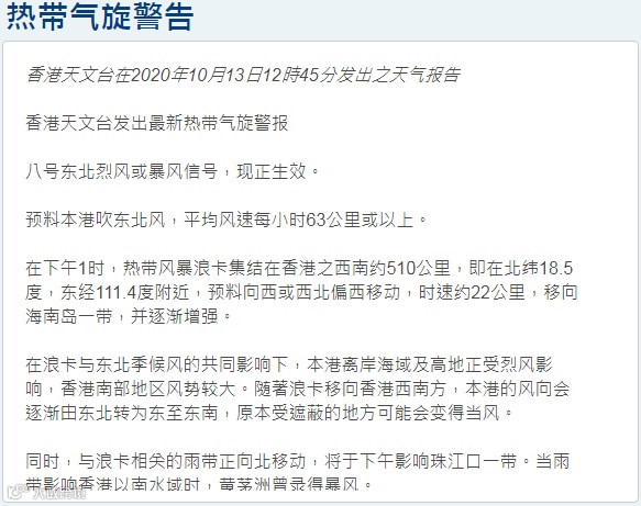 香港天文台发布预警 ↓