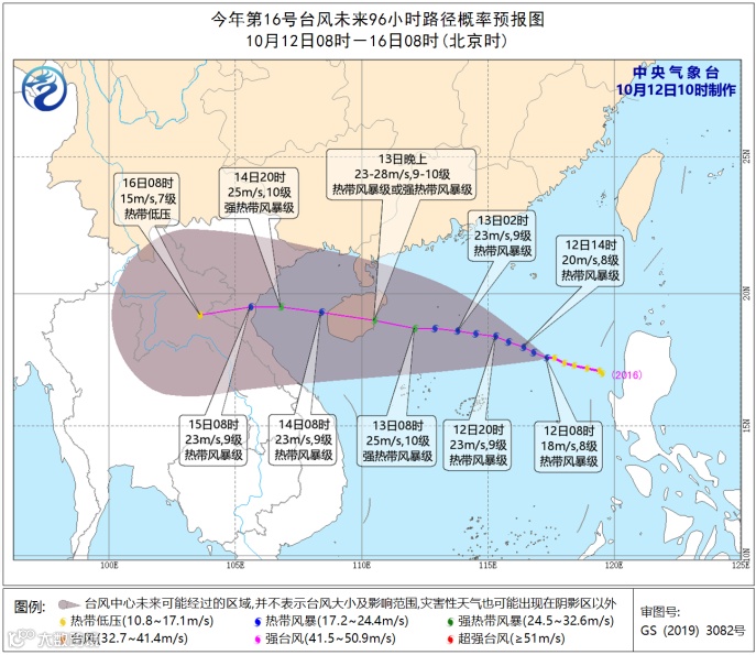 今晨7点,台风“浪卡”(热带风暴级)的中心位于海南省万宁市偏东约260公里的南海北部海面上,中心附近最大风力有9级(23米/秒),中心最低气压为990百帕。预计,“浪卡”将以每小时20公里左右的速度向西偏北方向移动,强度还将有所加强。