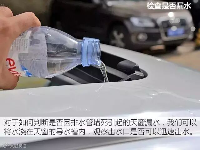 因为天窗的排水软管会经过车辆的A柱、C柱,所以在A柱、C柱和天窗方位附近出现水渍就