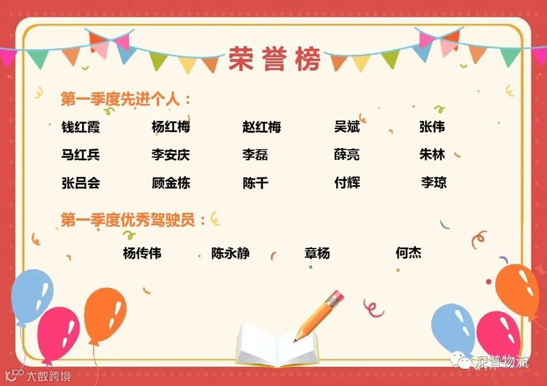 深普物流2023年第一季度先进表彰