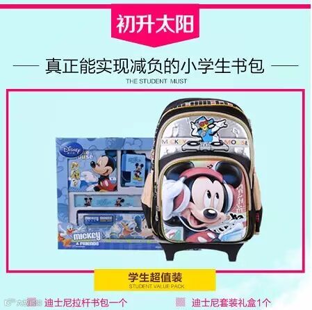 【初升太阳】正品迪士尼拉杆书包套装,原价498元,现300元