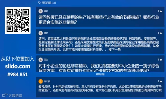 活动期间,意大利米兰理工大学的马里奥·莫塔(Mario Motta)教授、马泰奥·赞基(Matteo Zanchi)教授、恩里科·卡尼奥(Enrico Cagno)教授等通过理论解读、案例分析、互动答疑等形式,向参加活动的代表们系统介绍欧盟2050年实现“碳中和”节能减排路线图以及能源密集型产业的减排挑战,2050年意大利工业部门发展的未来技术场景和创新政策及激励机制,意大利重点用能行业(钢铁、水泥、化工、塑料、造纸等)先进节能技术和能效提升战略措施,以及热电联产技术及其应用、工厂制冷和热泵处理系统、工业能效评估、能效管理体系、能效分析工具等。同时,在课堂结尾,通过提问解答环节,各地企业代表与意方教授展开交流,氛围融洽。