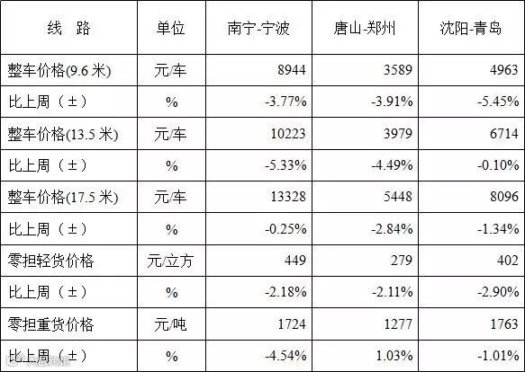 从分地区指数来看,各地区运价指数均有不同程度回落。其中东北、华中地区运价指数回落幅度相对较高,幅度超过2.5%;西南、长三角地区运价指数回落幅度不足2.1%。