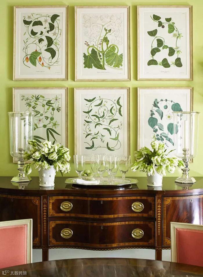 以取自自然事物的色彩来装饰居室是对爱好自然的情怀的最好回赠。这些色彩来源于蘑菇、绿叶、花卉,从明到暗,由深到浅,就像是扎根于森林中,卷曲的根须汲吸着养分旺盛的生长着,那份由内而外散发的活力与生机让人爱恋不已。