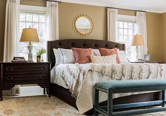 优雅低调、高品端方,这些色彩最是适合为不饰张扬的“老干部”们打造一间充满绅士风范的精奢空间。在设计时,可将这些色彩大面积运用于背景之中,或木作,或壁纸,毋需花哨,简简单单就好,注重细节处的装饰打造,金属色被内敛的灰棕色包裹其中,将低奢的内涵完美呈现。
