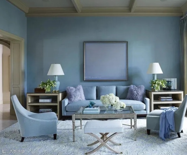 有一种静谧,叫水雾蓝。对比经典蓝,它有着水雾般丝柔,使得整个空间充满了温润感。如果想要将家打造成轻松、宁静的氛围,这种色彩是一种不错的选择。