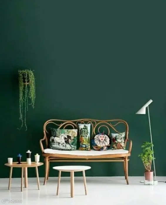 一般来说,绿+白是最经典的搭配,但如果与浅色系呼应,就非常容易形成撞色的效果。大胆跳脱的对比,让室内墙面空间视觉更有冲击感。