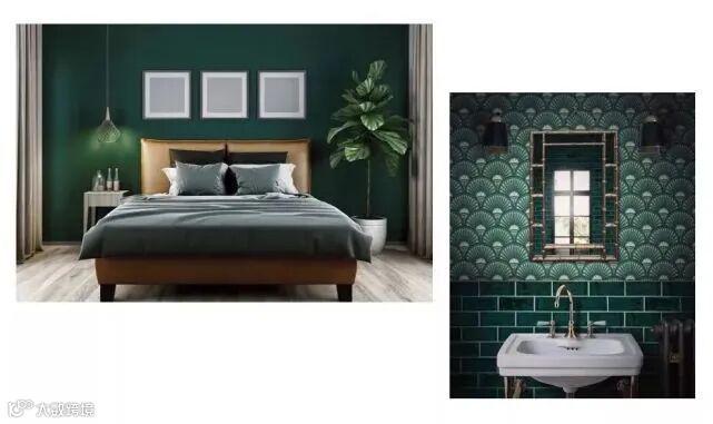 总之,植物绿仿佛为室内带来了万物复苏的感觉,为疲累的人们带来片刻平静,不仅如此,浓重的色彩再搭配一些金属、玻璃等元素,巧妙的融合复古的高级与未来的科技感,为室内带来不一样的视觉感受。