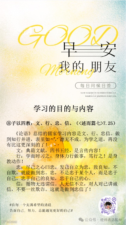 导读:子以四教:文、行、忠、信。 (<述而篇七>7.25)