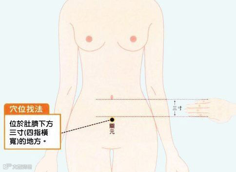 3.关元穴——脚底到头顶的0.618处为关元穴,在肚脐下四横指处。