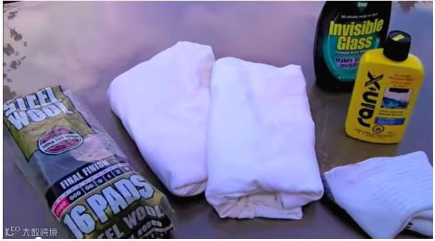 用钢丝棉搭配玻璃清洁剂擦洗挡风玻璃,然后用上斥水剂你会有新的发现!