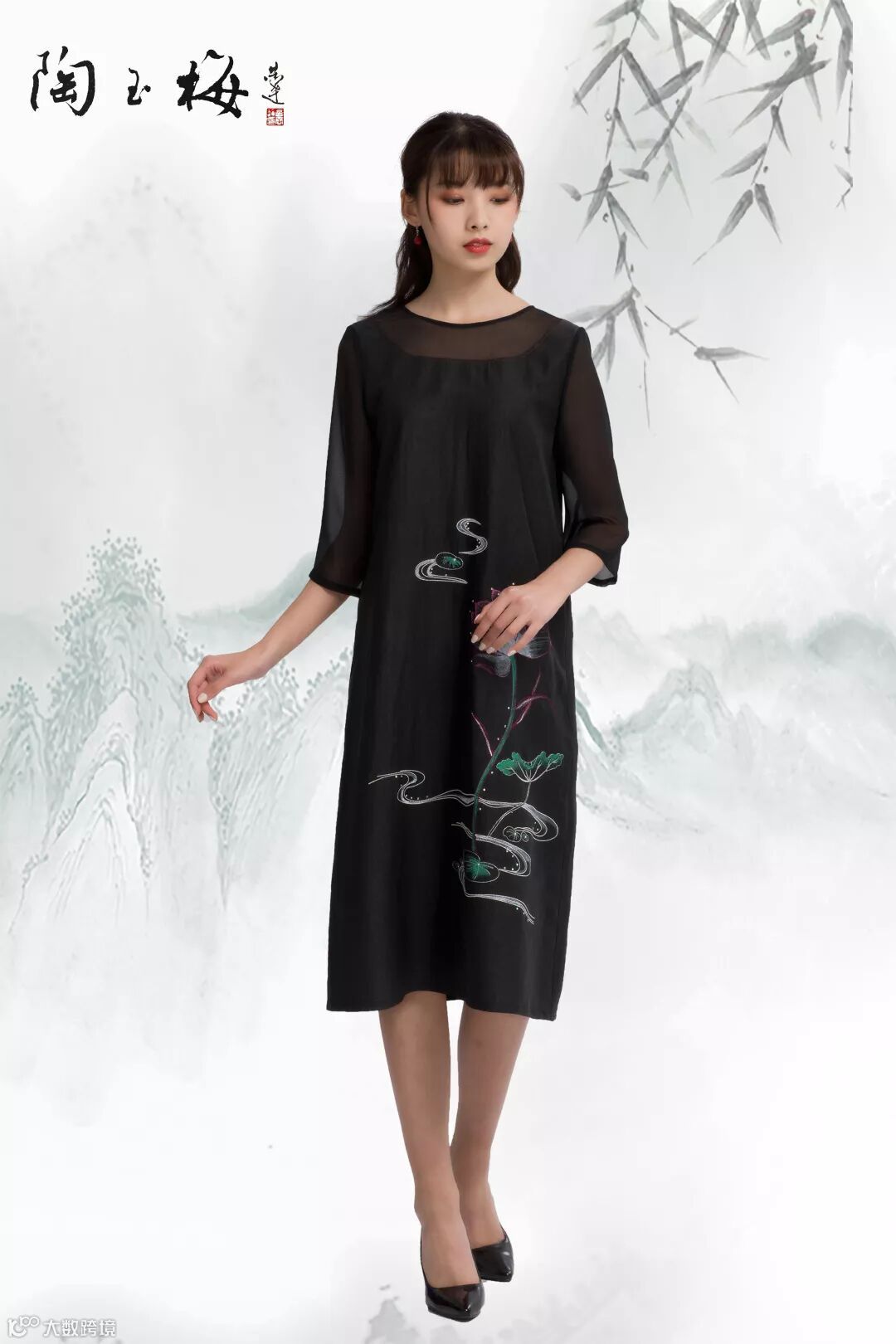 香云纱绣花奥黛裙