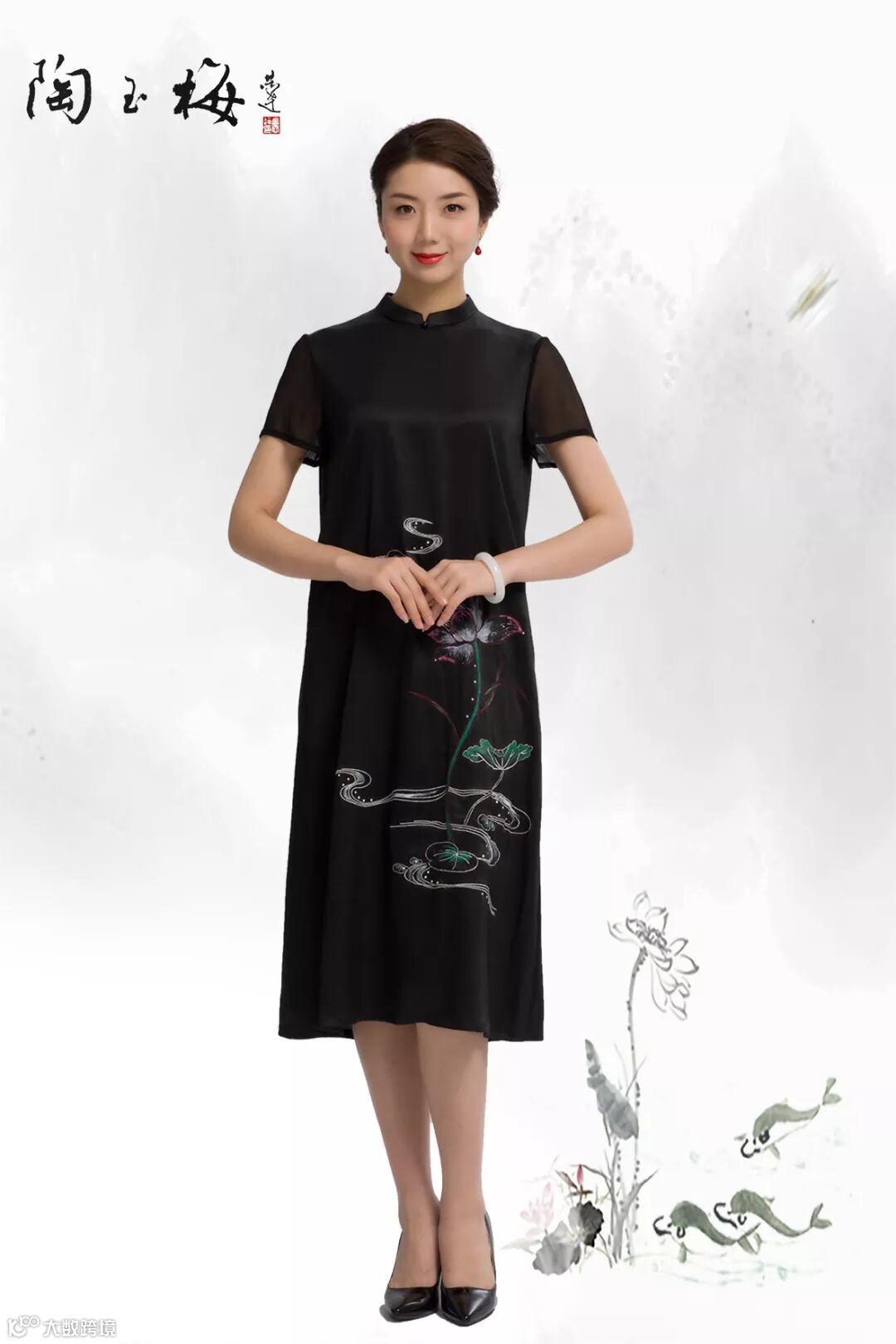 手绘旗袍领连衣裙