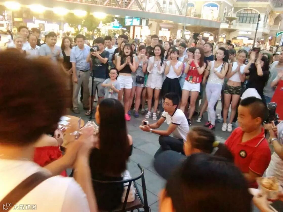 小伙捧出钻戒,繁华的灯火,众人的祝福,坚定的誓言,浪漫的冰雾,还有什么比这一瞬间更让人感动!