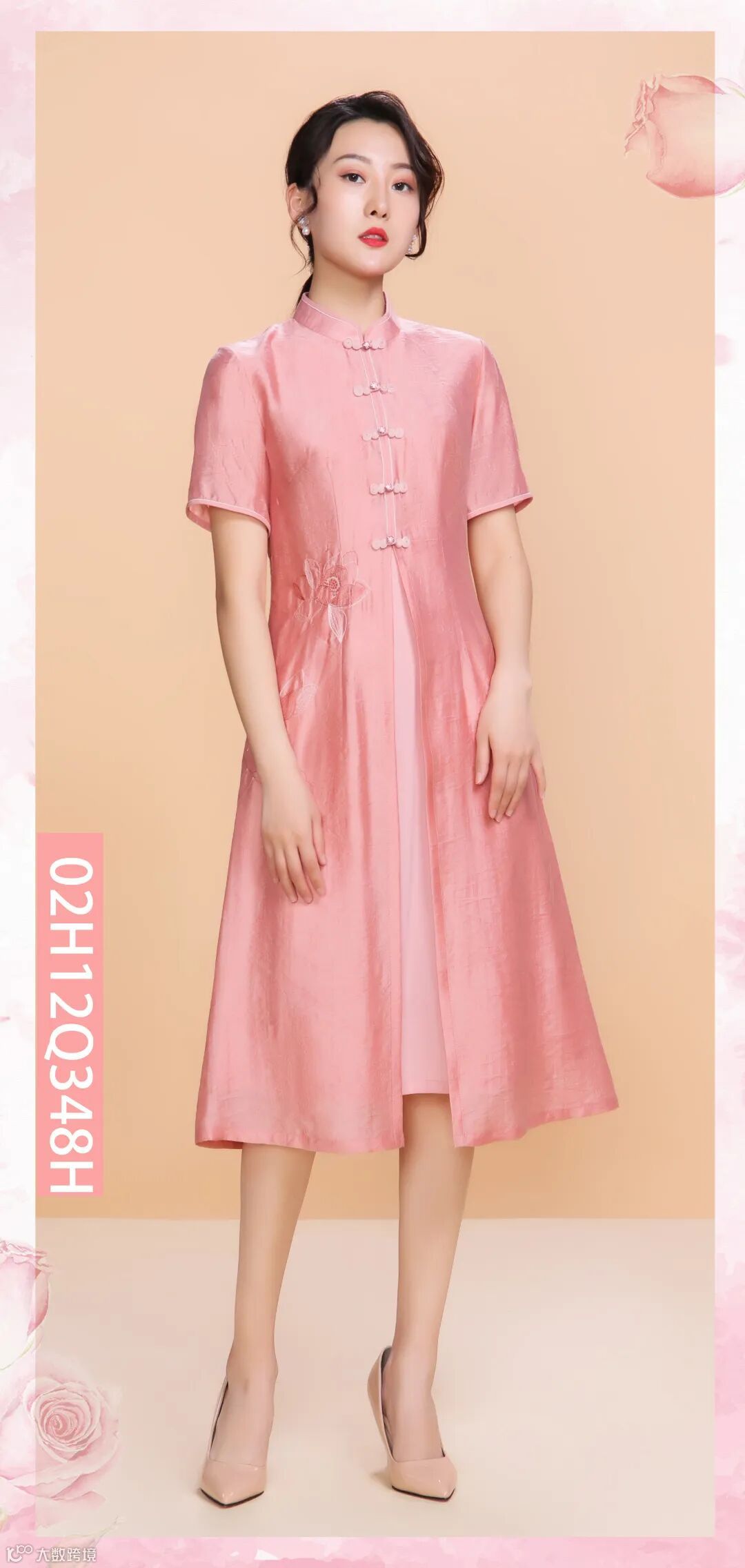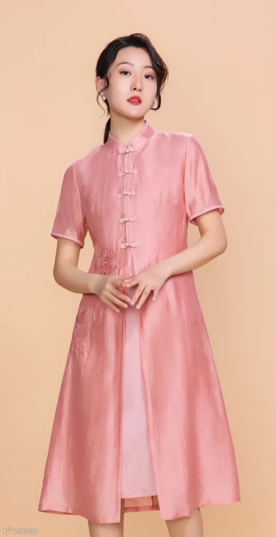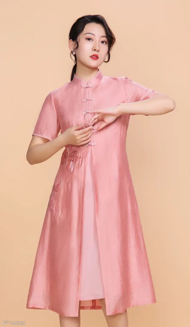提花丝锦前开叉旗袍,