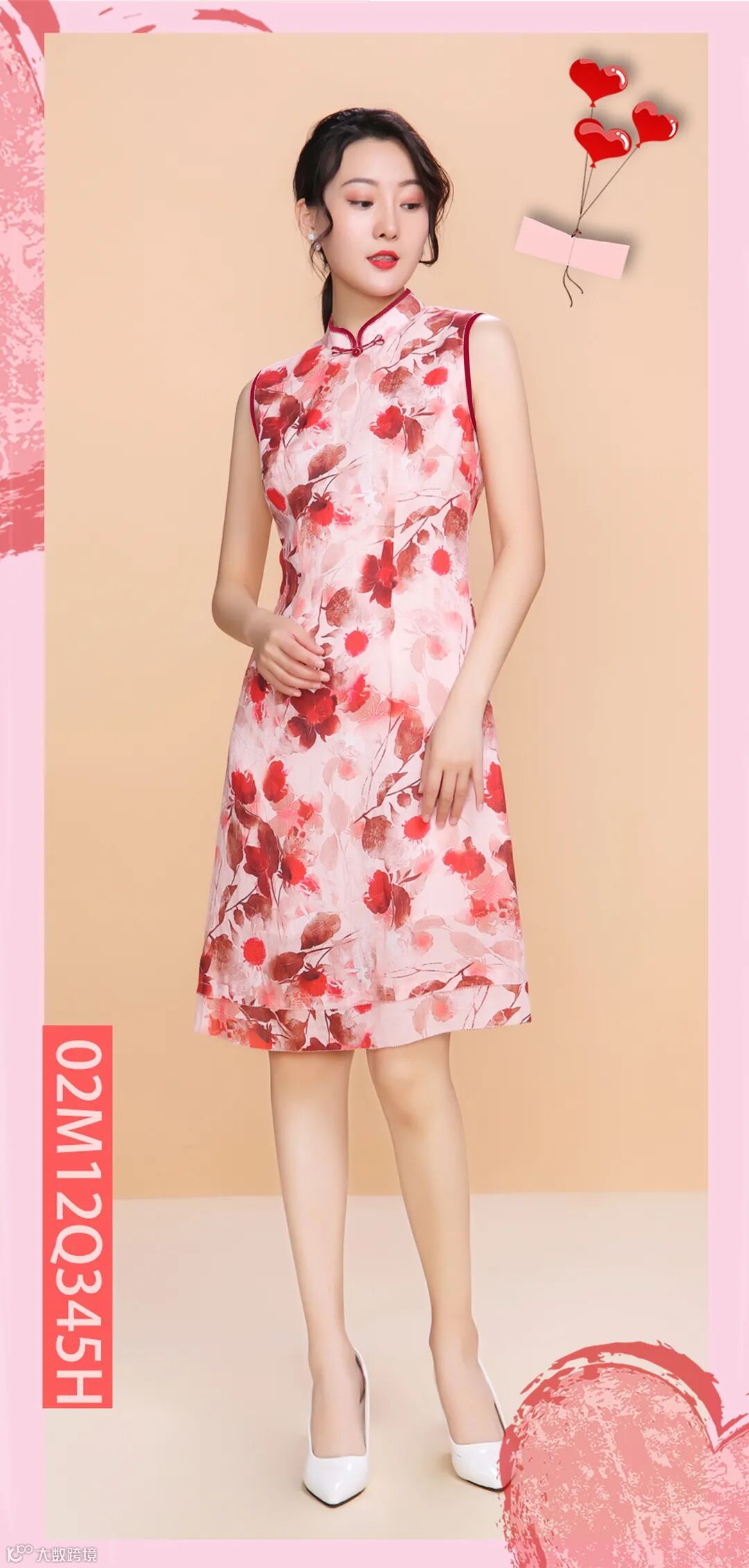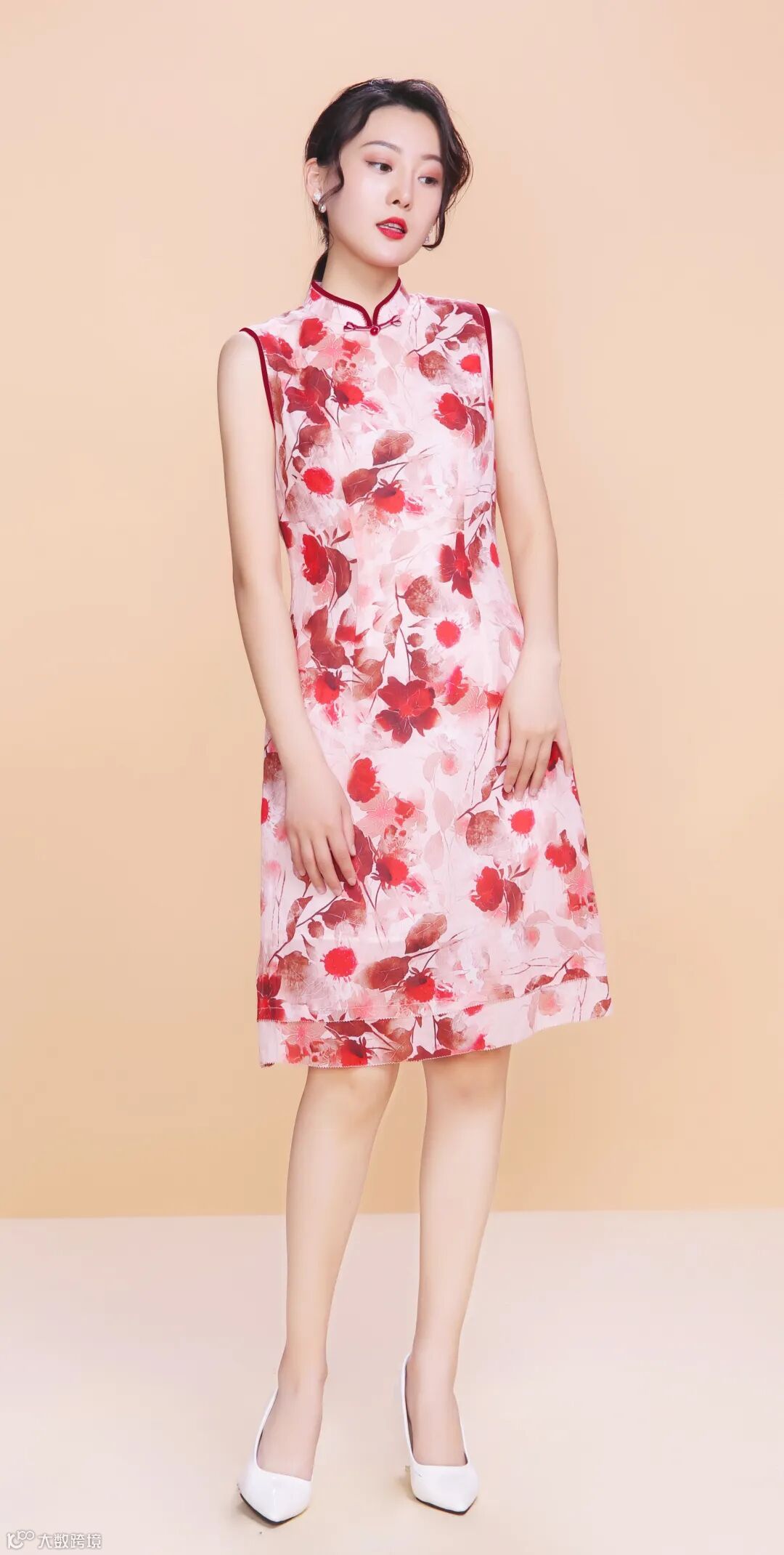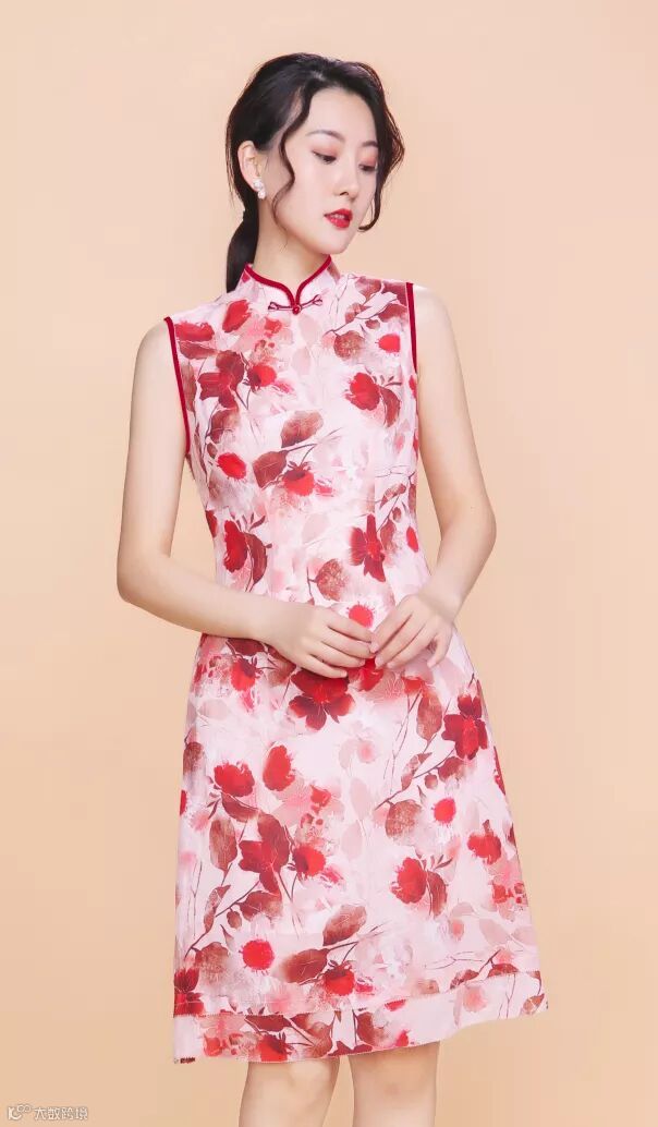中国风印花无袖旗袍,