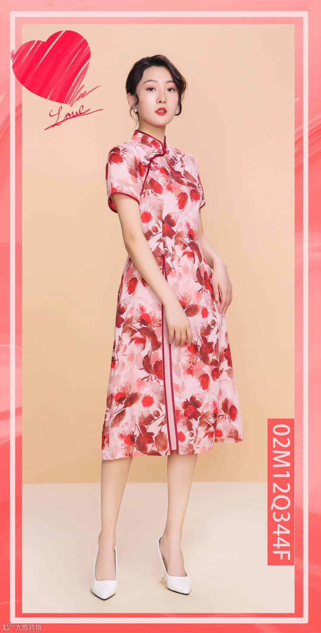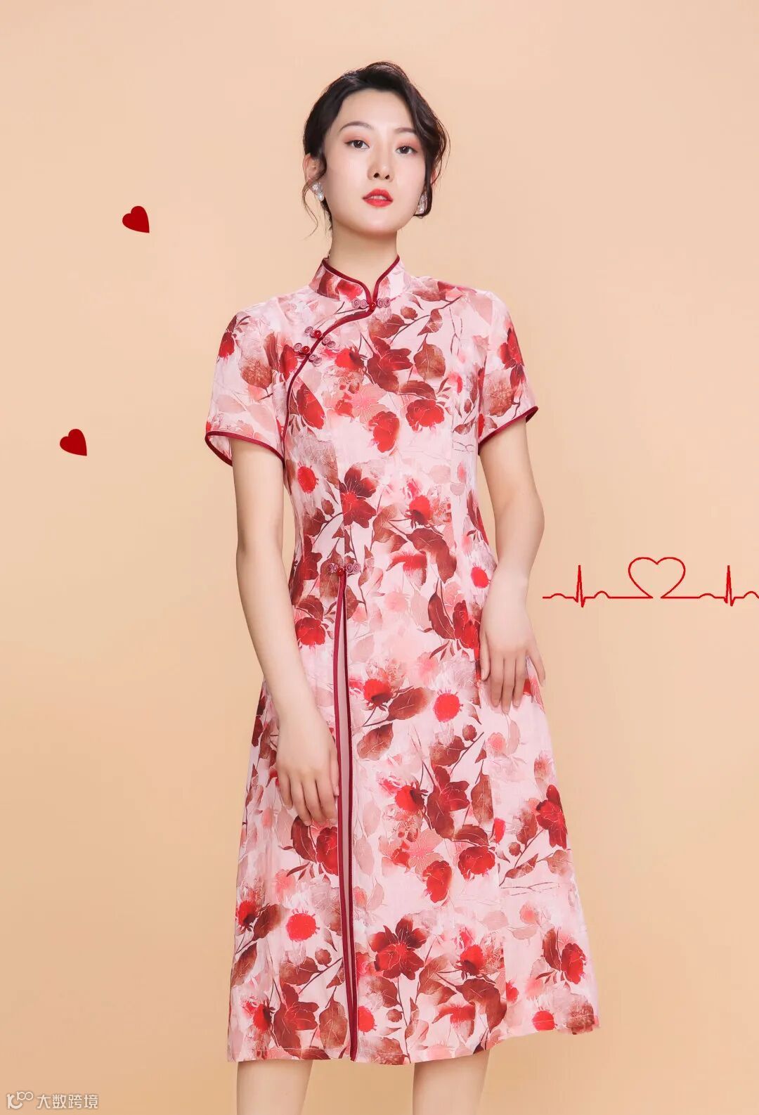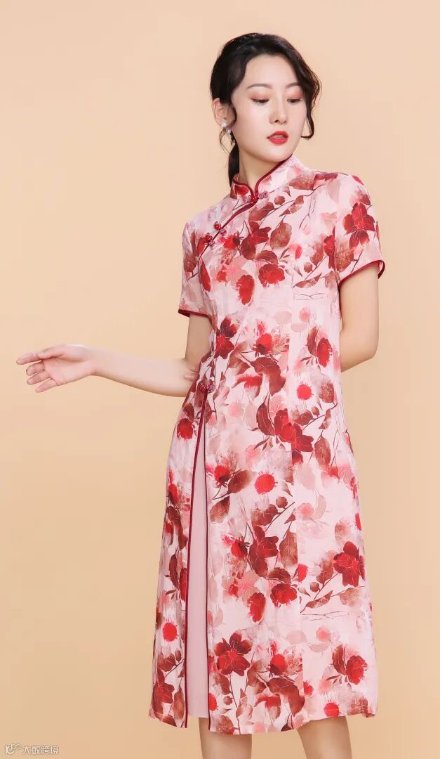 中国风印花棉布旗袍,