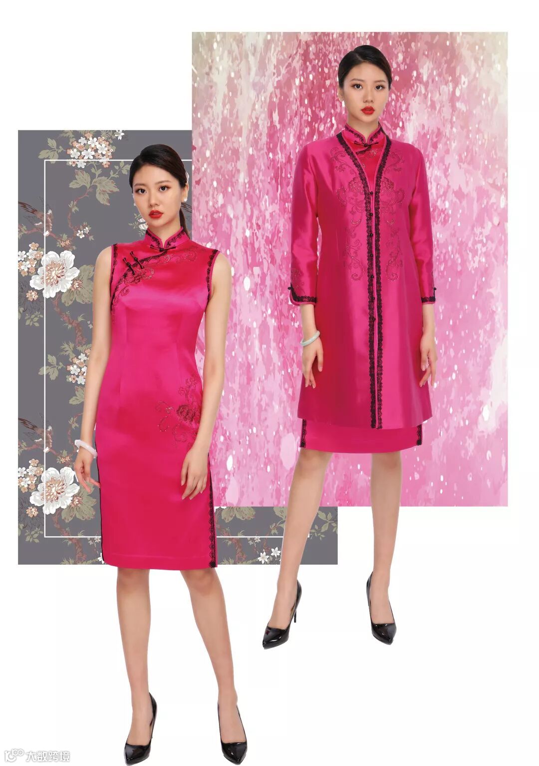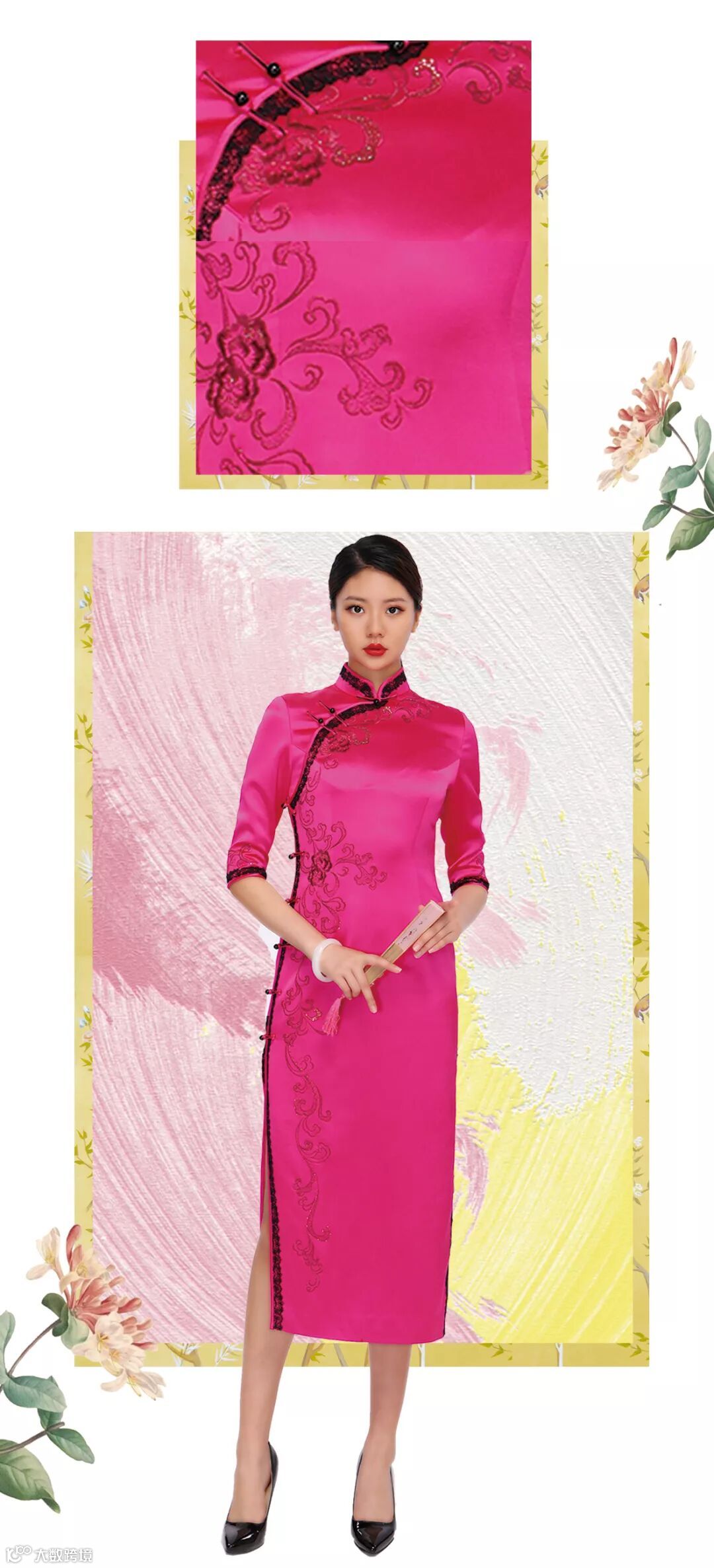 玫红色麻缎旗袍(L81Q590)
