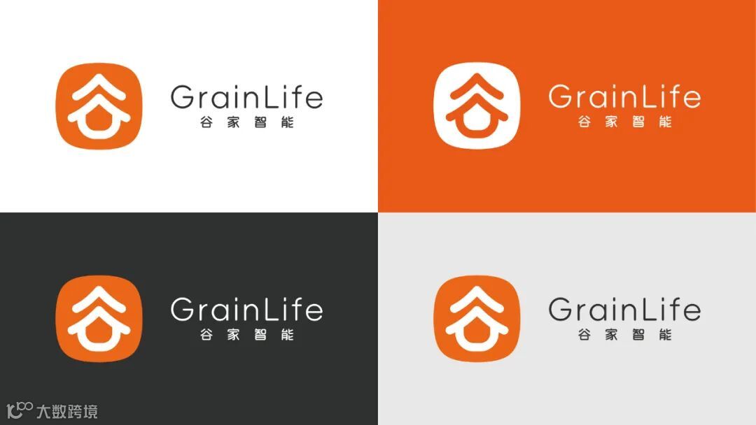 “GrainLife谷家智能”在文字设计上,保留了骨架但优化笔锋,笔画交接处增加圆角处理,实现“科技精密感”与“人文呼吸感”的完美平衡。