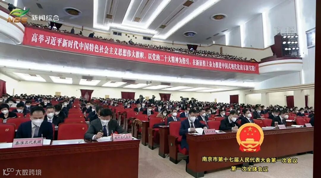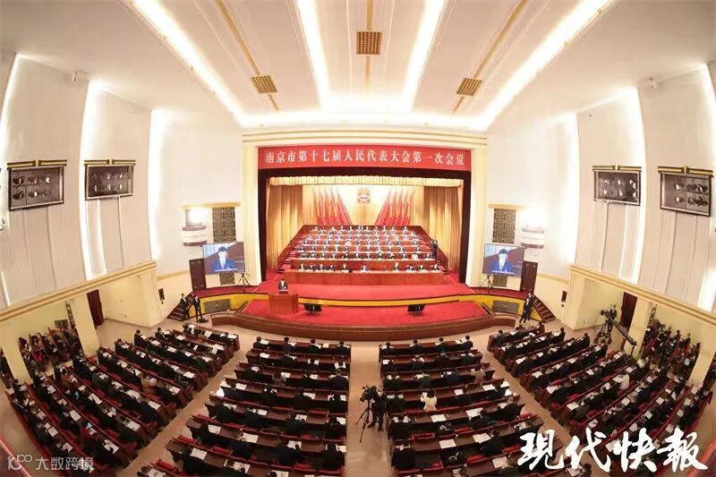 2023年1月10日上午9点30分,南京市十七届人民代表大会第一次全体会议于南京人民大会堂开幕。
