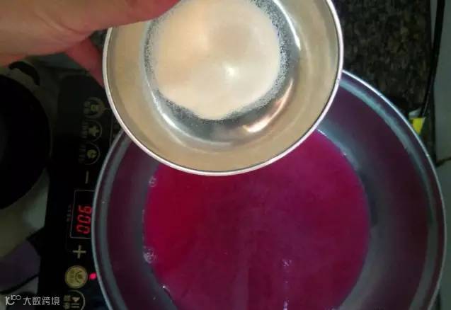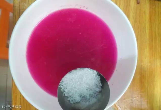 2. 过滤好了,加入适量清水,让颜色变得更加靓丽,并加入适量白糖,可以更具个人口味决定糖的分量。