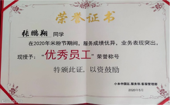 从2019年9月加入公司到现在,他数据一直非常稳定,多次获得周冠军,优秀对话,2019年最佳新人奖。在本次米粉节活动中他以全线数据第一的好成绩获得米粉节“优秀员工”称号这个称号对他来说实至名归,是他脚踏实地一步一步走到现在,用真正的实力说话。