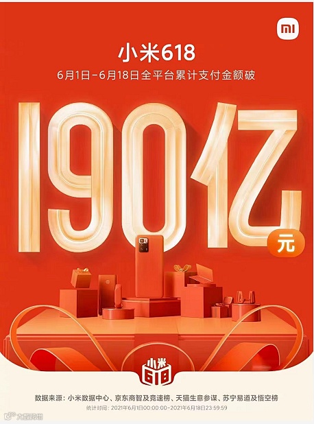 小米618,6月1日-6月18日全平台累计支付金额破190亿,这可真是让人激动消息。