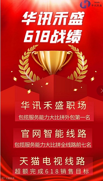 不仅如此,华讯禾盛在618中也是取得了优秀的成绩,华讯禾盛职场荣获“包揽服务能力大比拼外包第一名”,官网智能线路荣获“包揽服务能力大比拼全线路前七名”,天猫电视线路更是超额完成618销售目标,这些荣誉和成绩离不开华讯每一个人的努力,只要我们拧成一股绳,成功就在向我们招手。