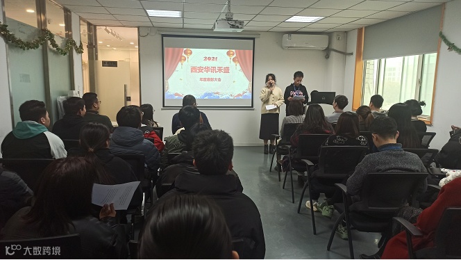 年会开始,两位主持人登场。伴随着视频播放大家的思绪进入2021。这一年来,大家携手并进,努力奋斗,日夜挥洒辛勤的汗水,共创辉煌。