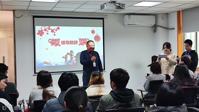 首先,由公司的总经理谷总做精彩致辞。谷总首先作为领导层代表向全体员工表示衷心的感谢。我司的发展离不开所有员工兢兢业业的奉献和付出,大家在各自岗位上创造了不凡的业绩,希望大家在来年的工作中能够再创辉煌。