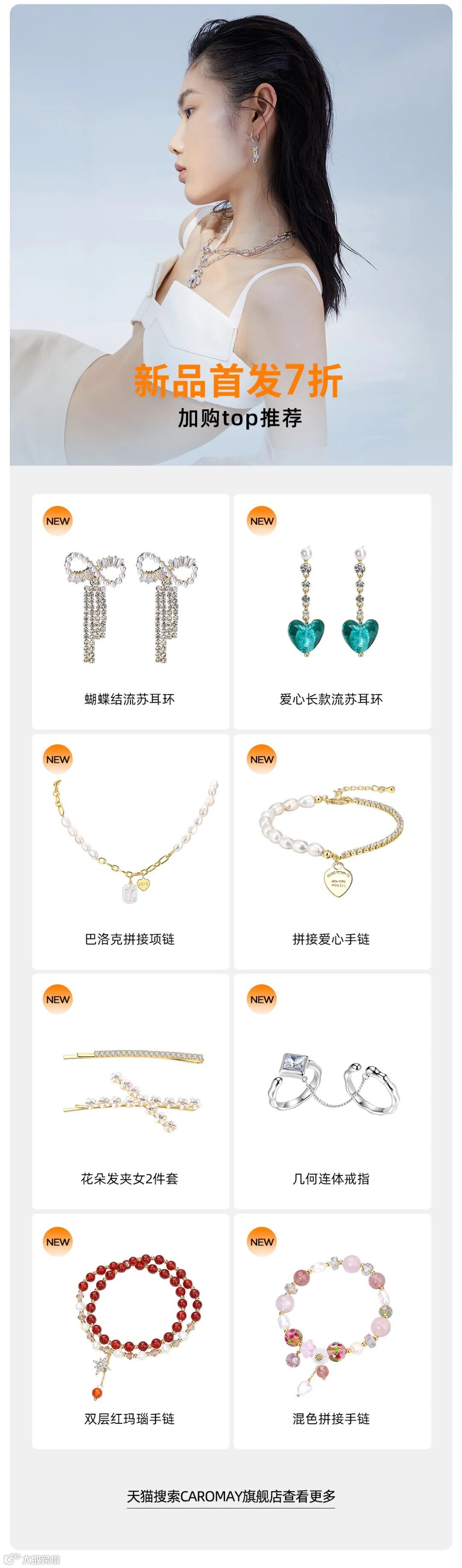 致力于为女性塑造自由、优雅与众不同的风格。划时代的创新理念与前瞻创意,成为现代女性美学的风向标,展现经典美学符号与隽永魅力。将工匠精湛的手工制作工艺揉合于CAROMAY的时尚设计中,以崭新的手法演绎现代艺术美学,打造出富有现代气息的时尚饰品