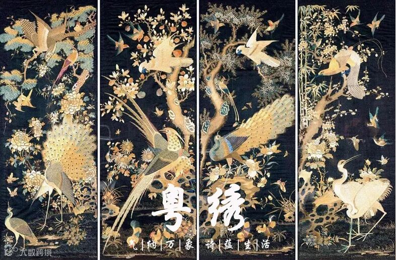 粤绣,会采用金银线来绣~绣线光洁整齐、