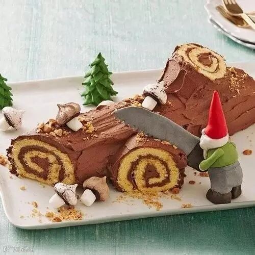 木材蛋糕(Yule log) 法国节日必备点心,其名字中的“Yule”其实是圣诞节的旧称,因为从维京时代至今的冬季庆典,英格兰的人们在圣诞节时都会在林子里砍下树木拖回去放置在壁炉内,从平安夜开始烧上12天,所以这种树木就被叫做“Yule log”(圣诞树)。 而法国人在过平安夜时,人们都会回乡团聚。半夜时,全家人会聚集在暖炉前,边吃着这种象征着节日的蛋糕(通常配以咖啡或红茶)边借机联络家人间的感情。因此木材蛋糕就成了法国人过节时的不可或缺之物了。