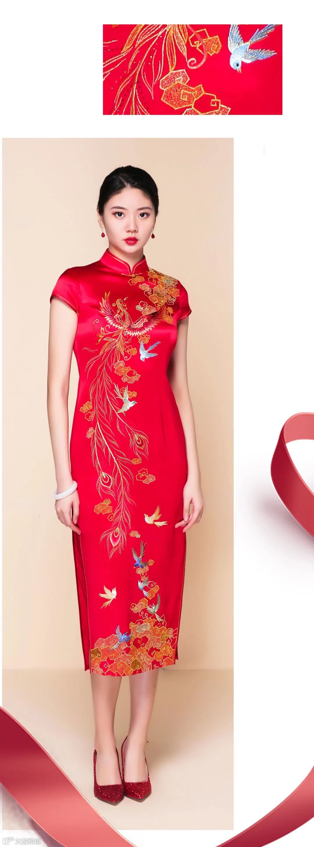 醋酸缎绣花新娘旗袍/08C13Q161S