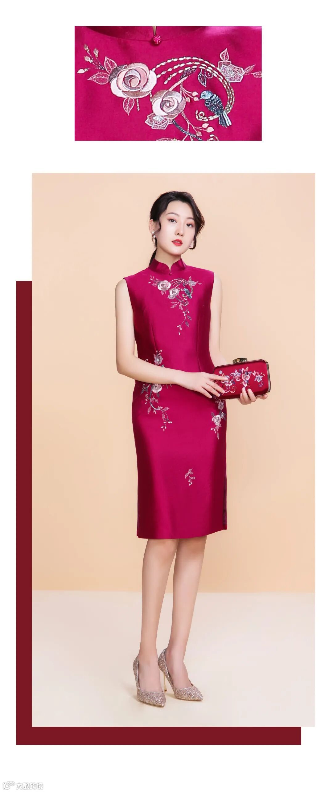 【玫丽】系列丝毛无袖旗袍/08F12Q144S
