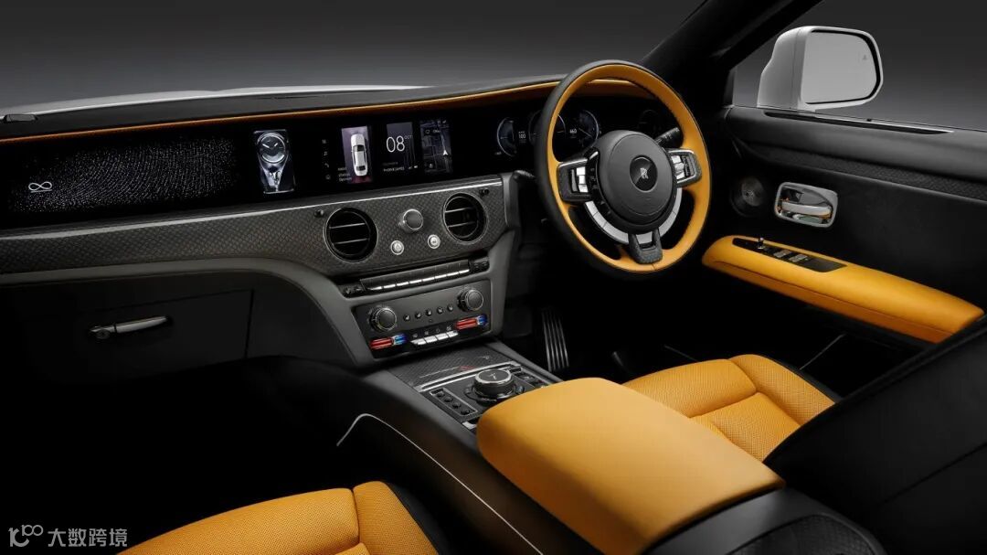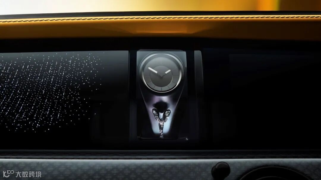 作为Black Badge系列的显著特征,极具科技感的深色饰面被审慎而又广泛地运用于Black Badge古思特系列II的座舱之中。全新的“欢庆女神”时计画廊或许是对劳斯莱斯另一面个性色彩最为精妙的描摹。这个独一无二的透明展示橱窗陈列着一枚指针式时计和带有精美绝伦照明效果的“欢庆女神”塑像,与古思特系列II中采用的高亮抛光工艺不同,Black Badge古思特系列II车内的“欢庆女神”塑像采用了黑色镀铬饰面。在这一优雅灵动的现代艺术作品旁边,是经过强化升级的中央显示屏。基于劳斯莱斯品牌最先进的SPIRIT“奢华数字架构”,中央显示屏现已集成了全新的先进操作系统。