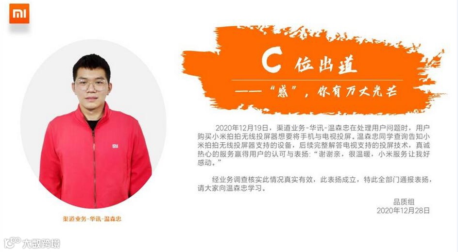 他们组2020年全年超预期27条点名表扬461条,无任何服务类方面定级和负评,优秀员工占比高,组内流失率职场最低。