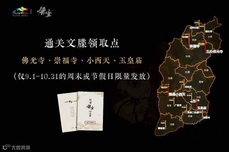 还开展了“跟着悟空游山西——山西古建巡礼”活动,9月1日开始,各地“天命人”在周末或节假日可前往佛光寺、崇福寺、小西天、玉皇庙打卡点限量领取通关文牒,这些创新的宣传方式有效提升了游客的参与度和体验感。