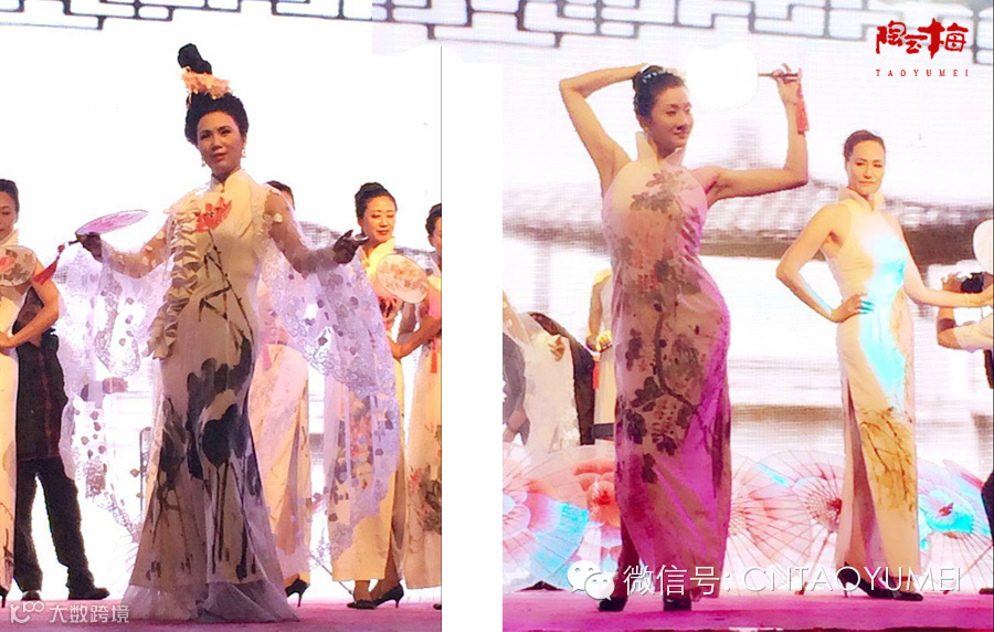 为庆祝南京899都市生活频道商业之家成立开播,陶玉梅品牌服饰携手著名画家汤永老师共同完成了手绘《金陵十三钗》作品创作贺礼!汤老师现场作画,将梅兰竹菊以及荷花灵动的跃然于旗袍之上。